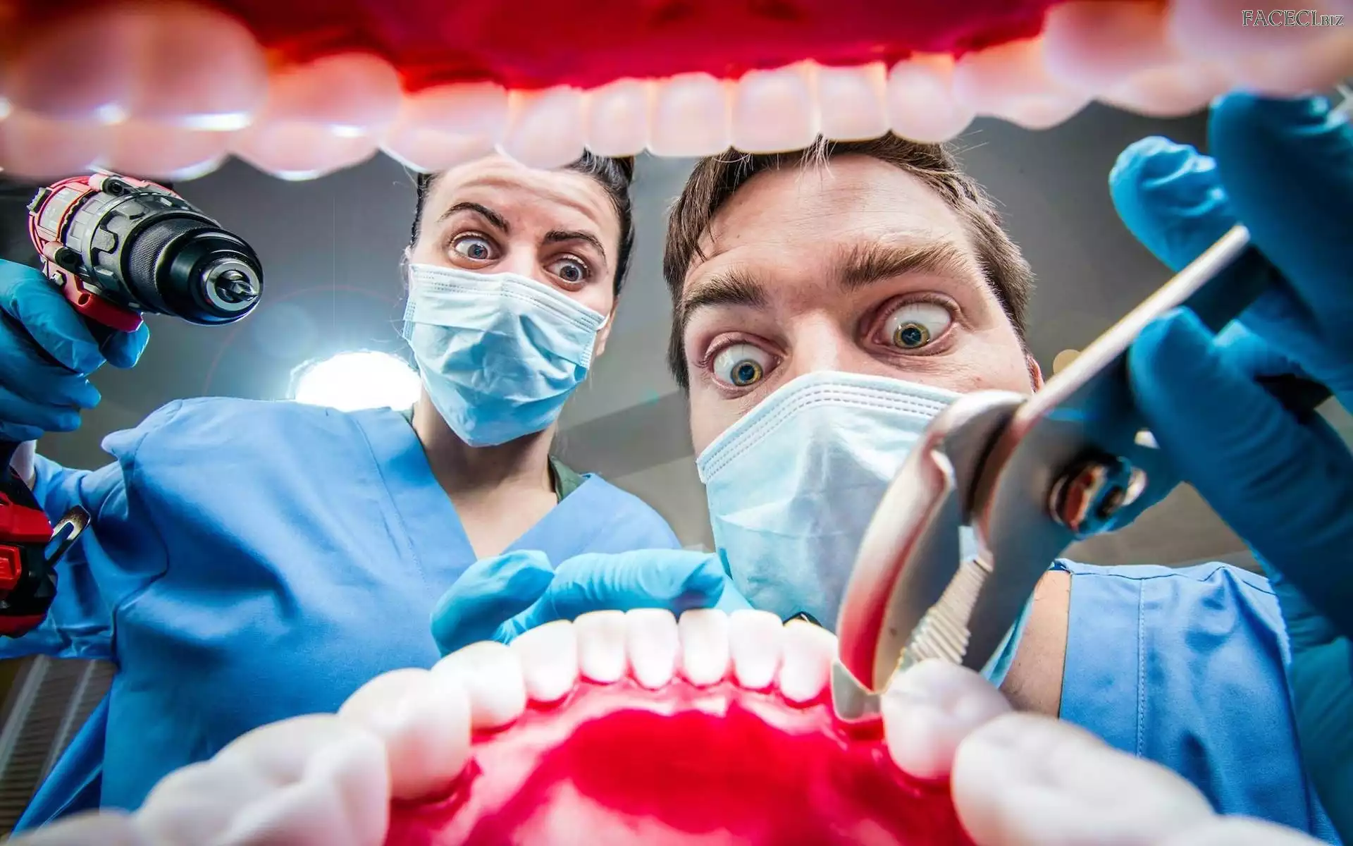 Śmieszne, Zęby, Mężczyźni, Kleszcze, Maseczki, Usta, Wiertarka - faceci.biz